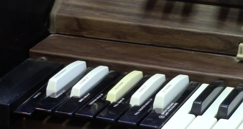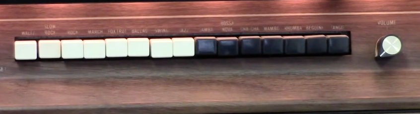 Mike Reed plays a Hammond ‘Grandee’ – layout is similar except lacking the reverse color keys for draw-bar presets selection. Following that is an ‘Elegante’ which has the reverse presets, a different rhythm section and a row of presets or ‘pistons’ between the keyboards – an evolution of Concorde – the sound is familiar. Unfortunately Mike passed away but his son Josh has re-uploaded.
