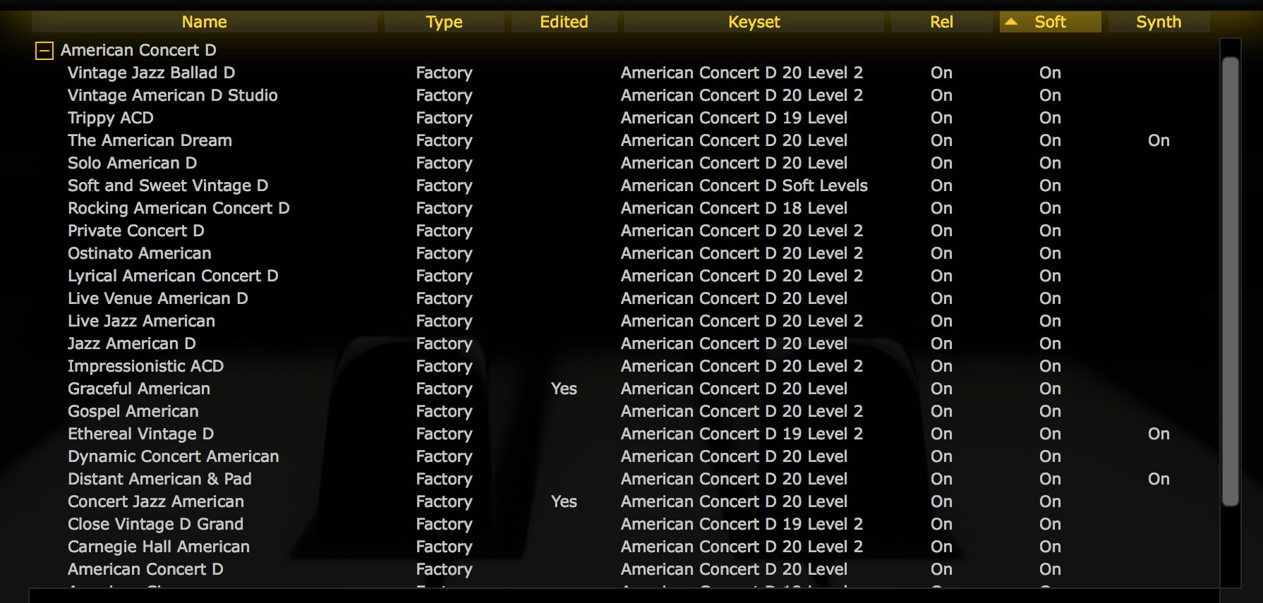 Many parameters are tweak-able, yet around a program preset and a keyset up to 20 separately-sampled attack levels [click each image for larger view].