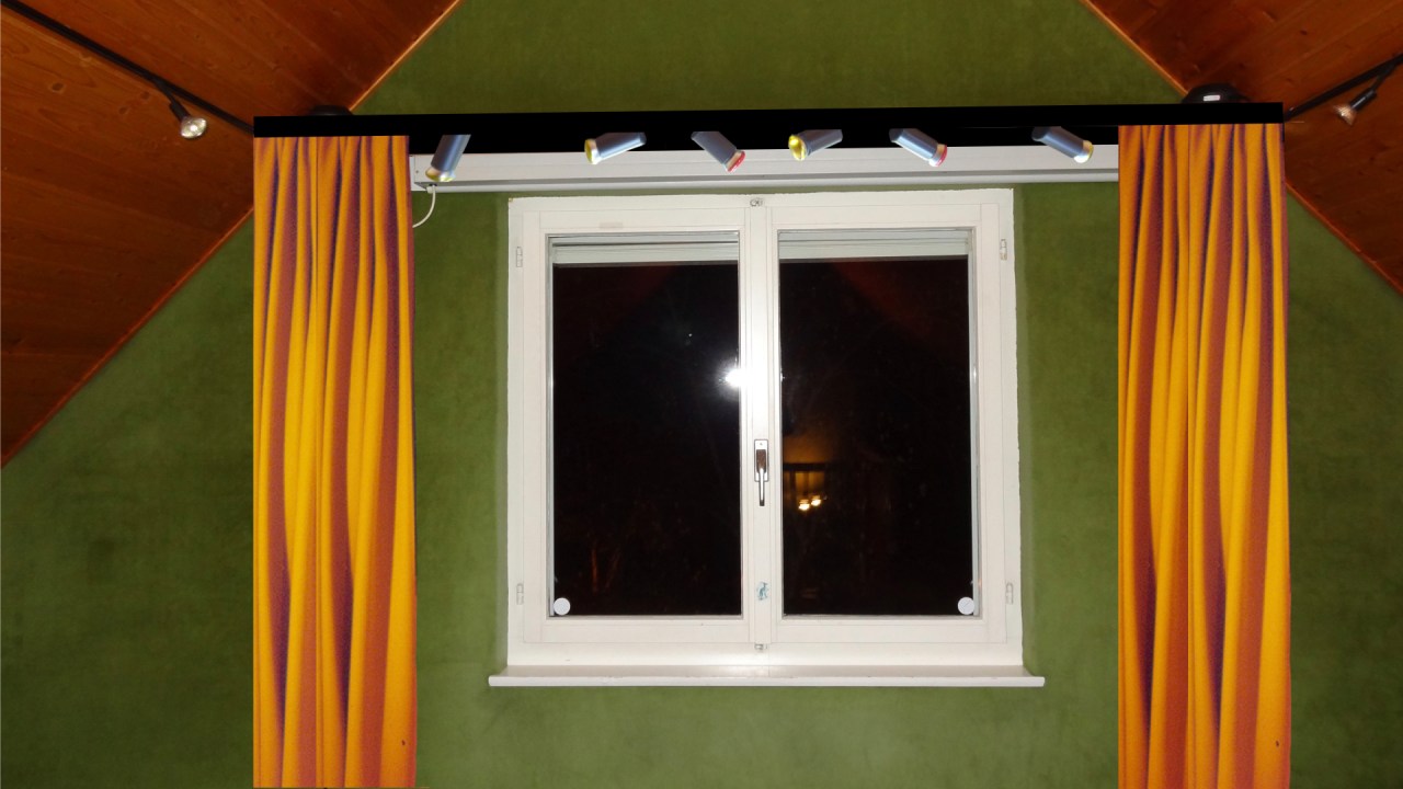 With curtains open and the screen raised, the window and its shutters were accessible so that the attic room could be used for daytime activities.