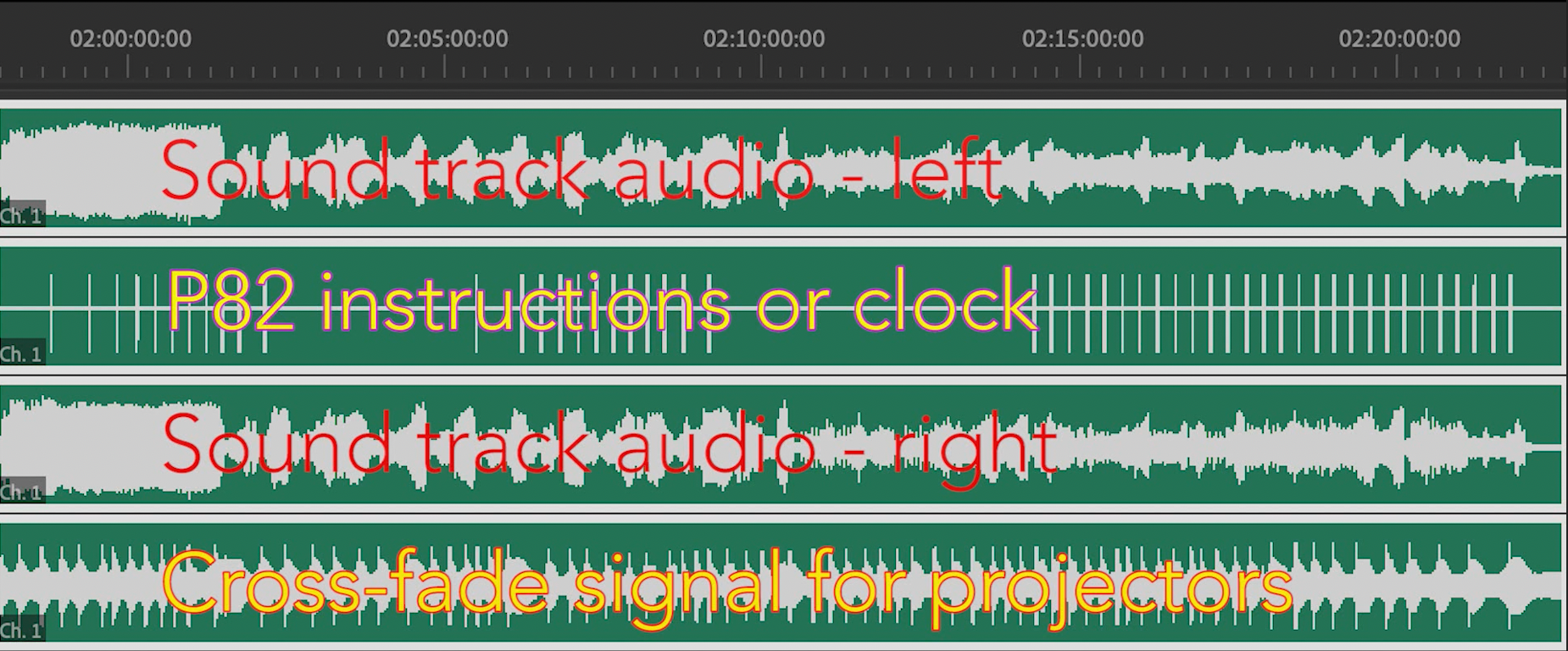 Next step here is to verify the “write to tape” functionality, much easier on a digital audio recorder than on the TEAC A-3440. And even easier to visualise and verify using Adobe premiere to display the final result. From the P82 keyboard we can select what we write to tape — or rather lets say write to our audio device, as our Zoom F8. Write selection options are: memory, keyboard, internal clock, remote status. For the test we choose clock and keyboard. We set the 1 second clock running and recording, then key in some more instructions over it. This first test is in write byte mode.