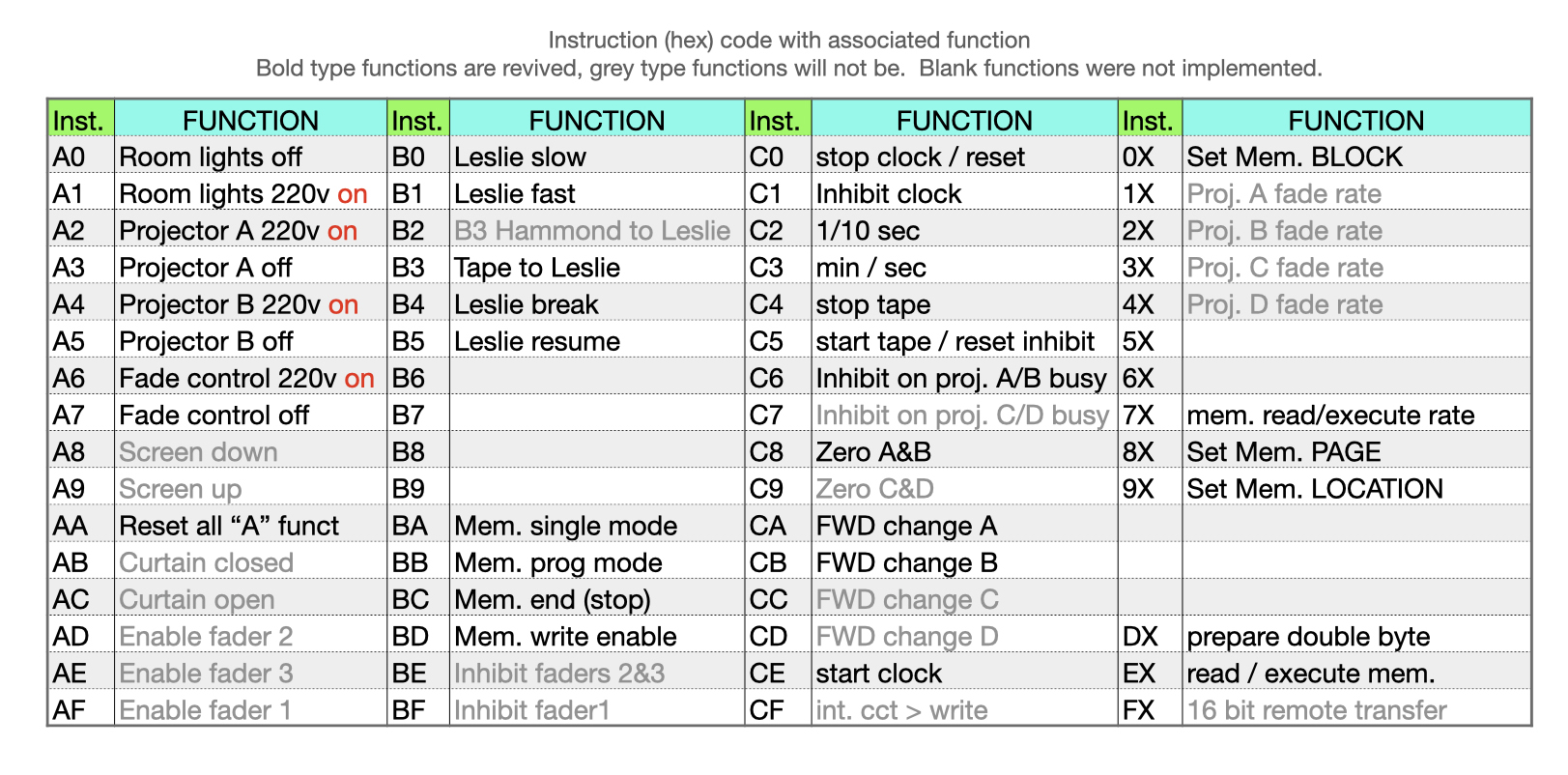 A. 48 two-key (single byte) instruction codes defined, 5 not implemented – so 43 active.