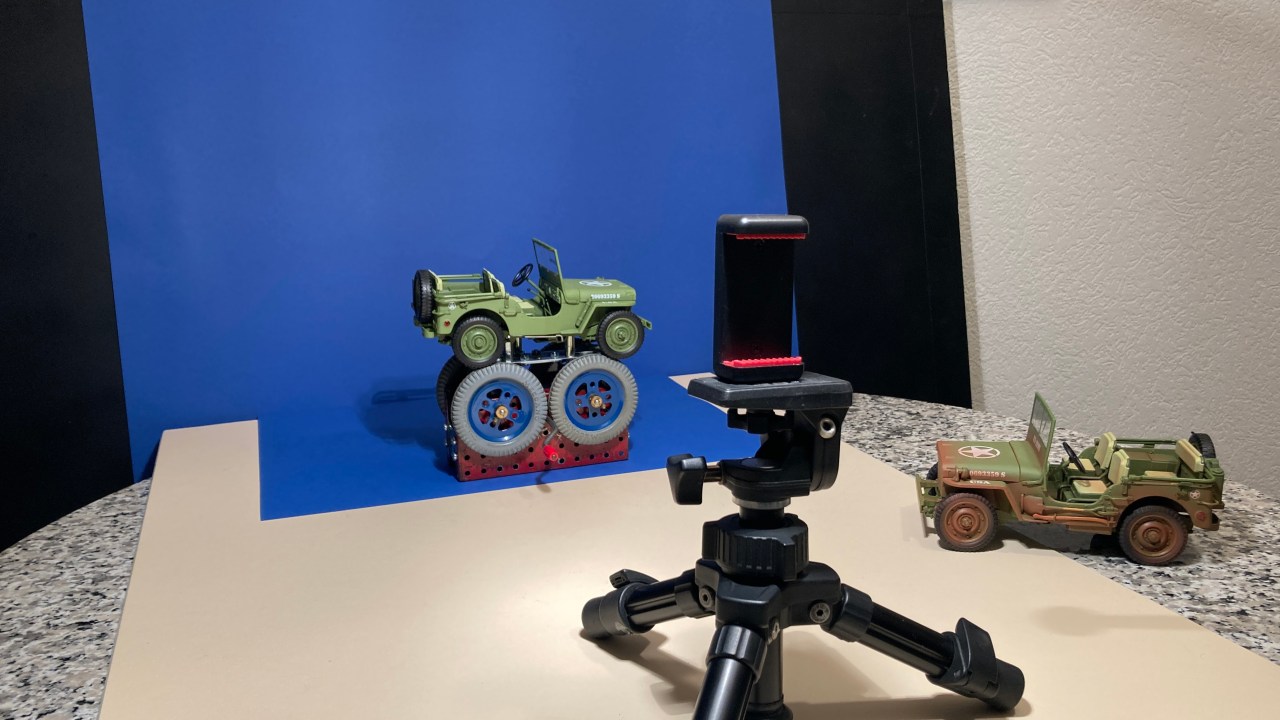 For ALL methods, we cannot find a better way to rotate wheels for animation than to use real rotation and film them. Maybe for a direct side shot we could create a digital rotation but, without some level of 3D graphics, the task of changing camera angle to the vehicle seems a hopeless endeavor. So our “wheel-rotation jig” is a critical tool for getting those wheels moving!