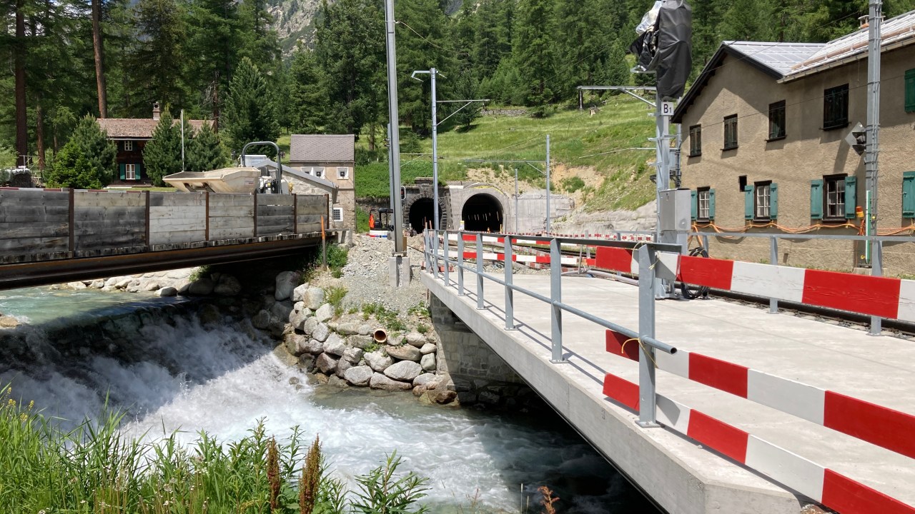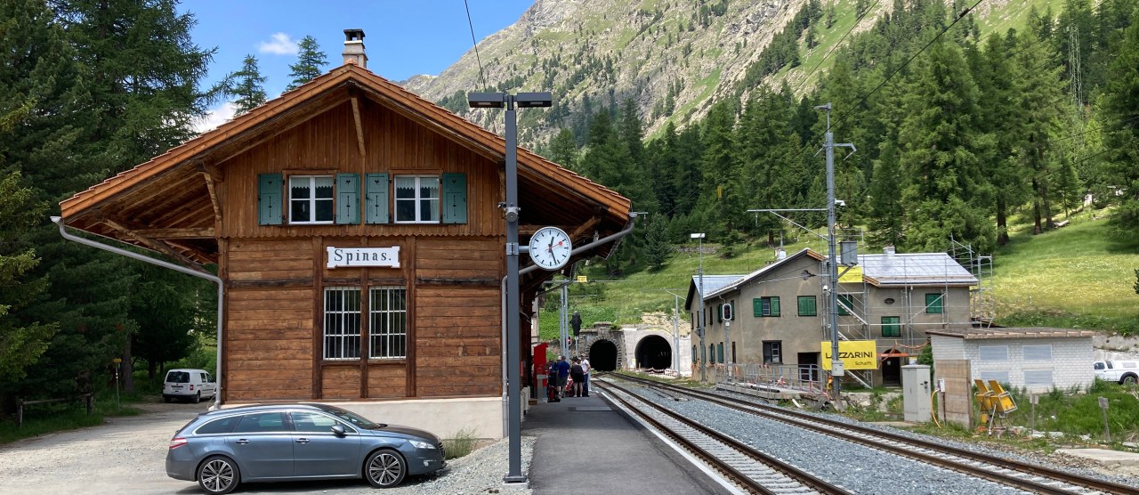 Spinas station is at the south portal of the Albula Tunnel [municipality of Bever, in canton Graubünden].