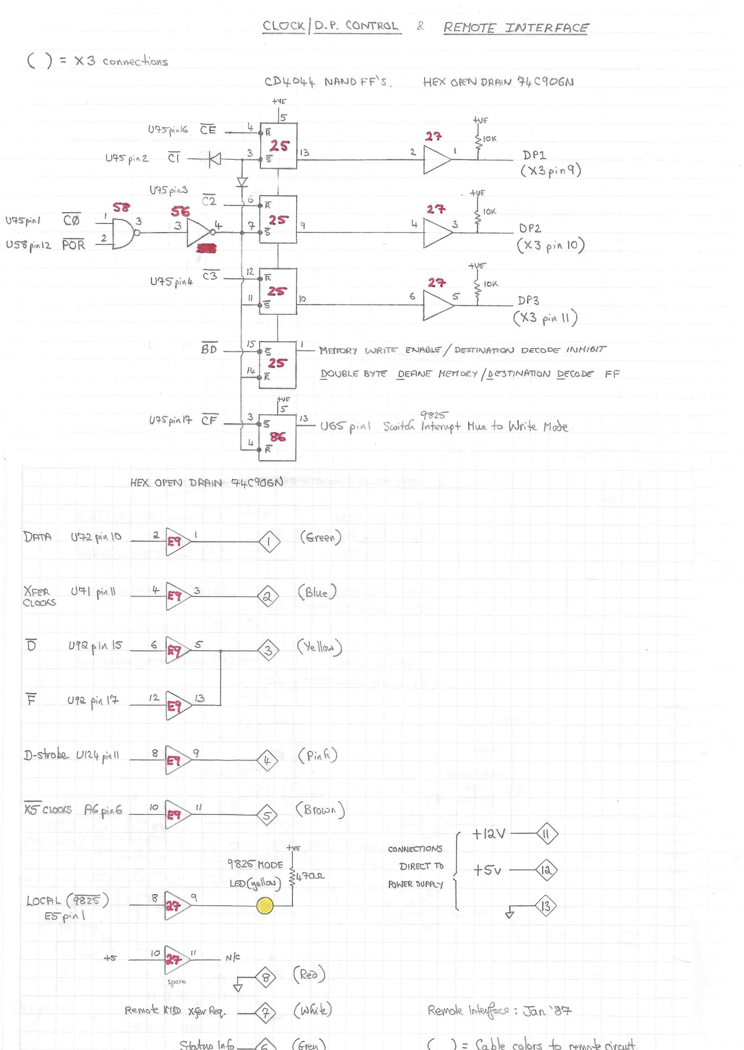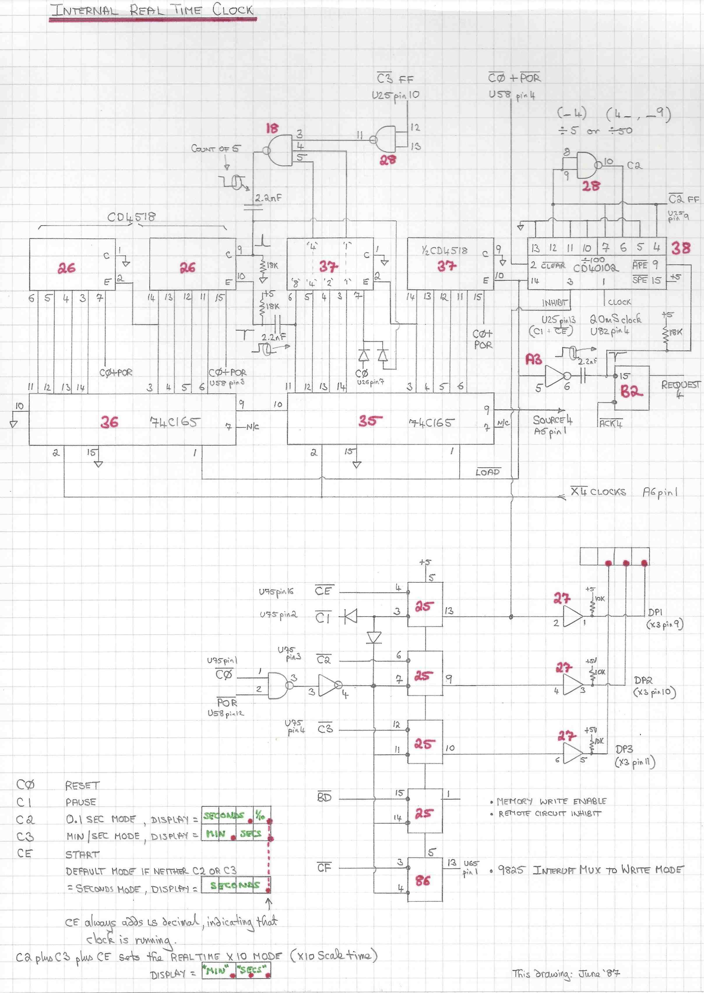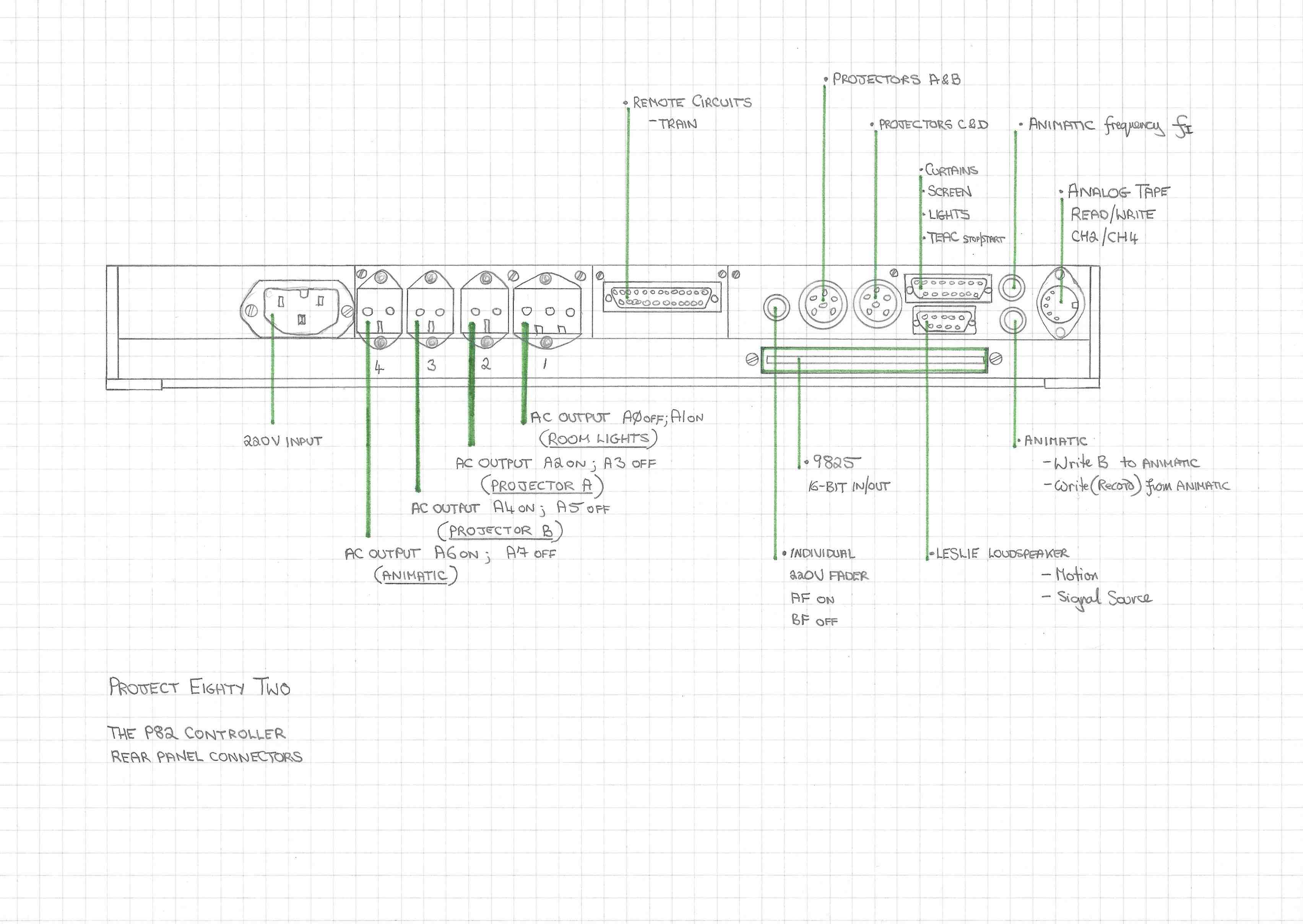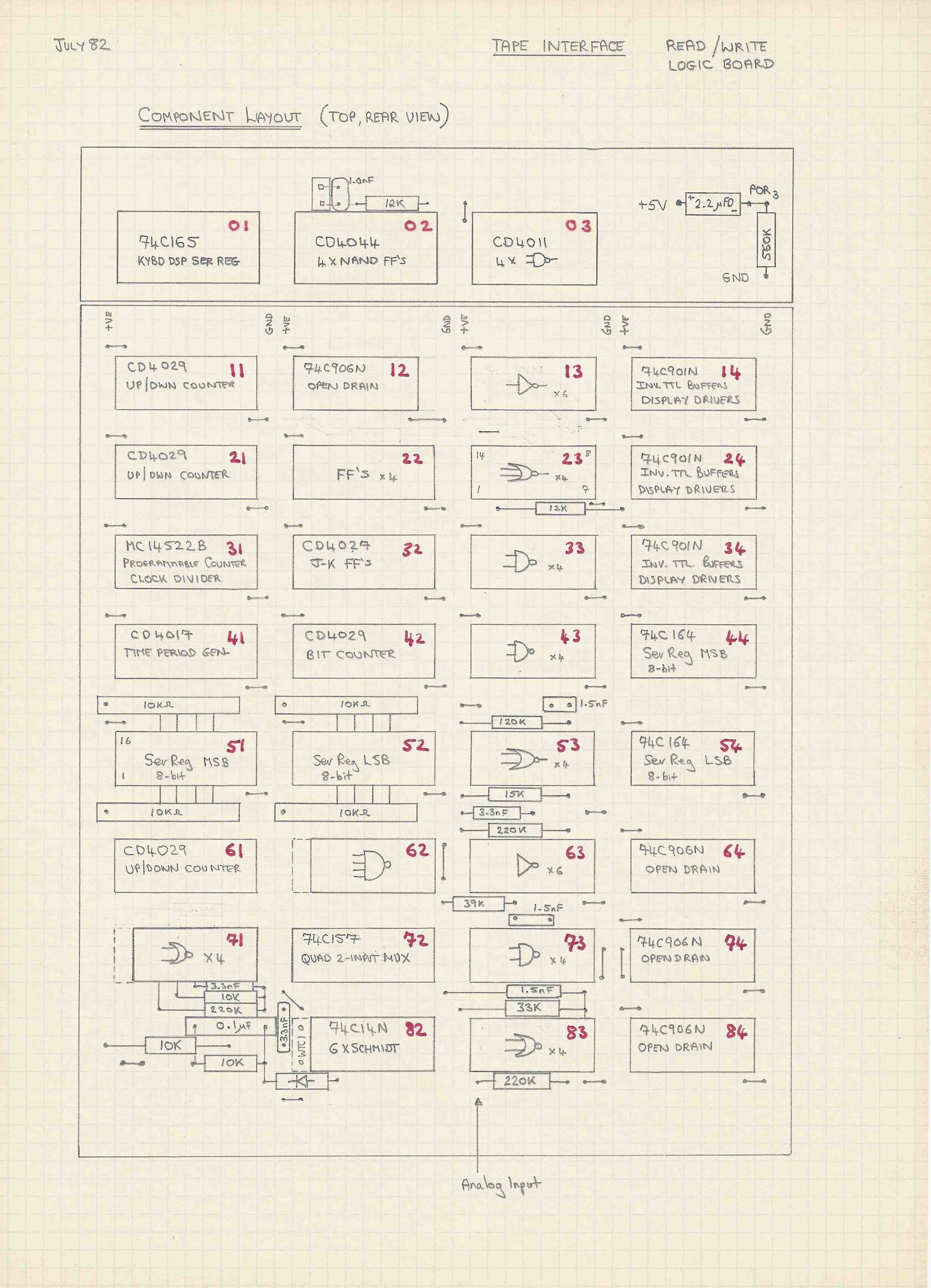 Detailed circuit diagrams and physical layout of components (central control unit) all hand-drawn between 1982 and 1987: