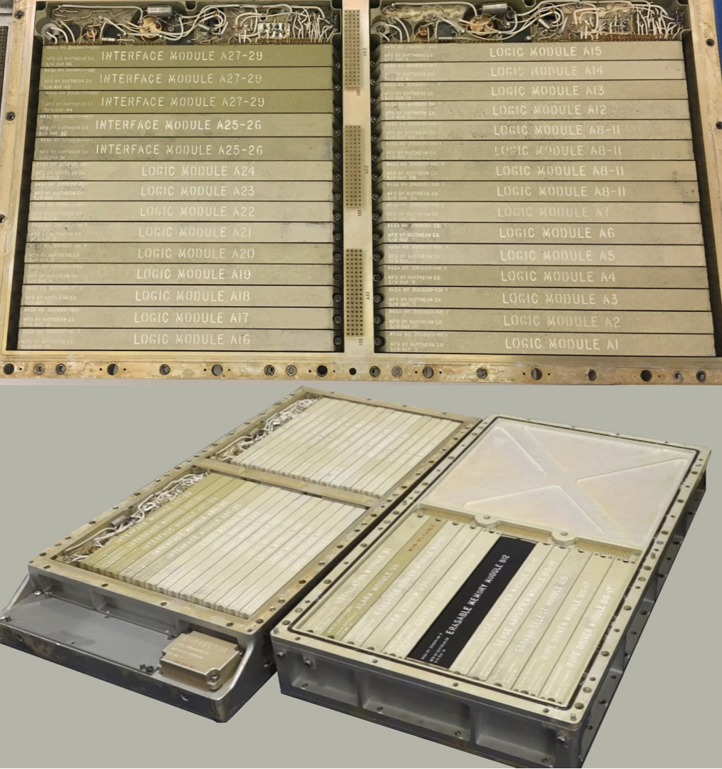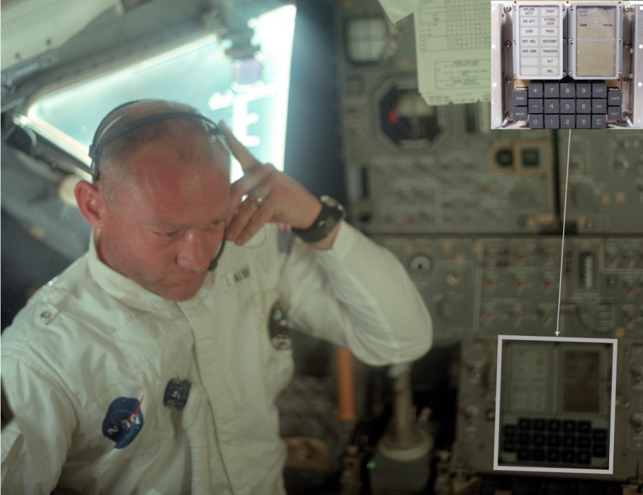 Moon landing & more Just images of the Apollo Guidance Computer (AGC): — full project index DSKY Logic module housing Back-plane 4 rows – 2 sides of NOR gates DSKY One of two trays Buzz Aldrin and the DSKY